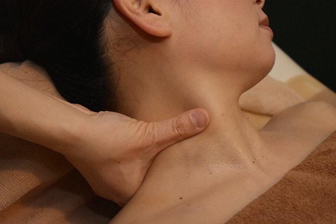 首肩や肩甲骨からほぐす小顔コルギで、1回でも驚きの小顔に!