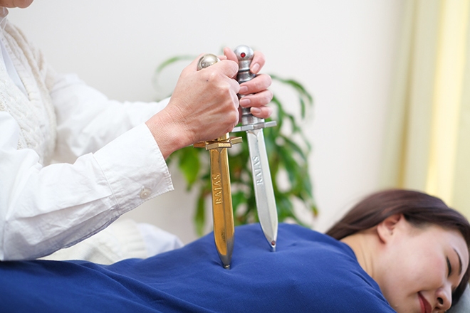 リングや剣を用いて手技だけでは届かない身体の深部に働きかけ、全身の筋肉や骨格の調整をしながら体調を整えていきます。