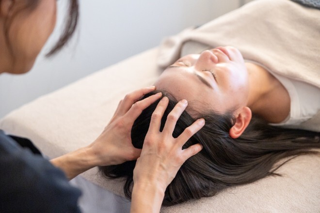 当サロンのドライヘッドスパは、強すぎず弱すぎずの適切な力加減でアプローチしていくのが特徴。施術歴10年以上のスタッフが在籍しており、繊細で的確な技術で頭皮のツボや筋膜にアプローチ。頭だけでなく首肩周りも丁寧にほぐしていくので、ほとんどのお客さまが寝落ちされるとても心地の良い施術となっています。