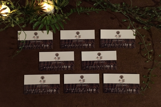タイ古式マッサージ&足裏 木霊のメニュー