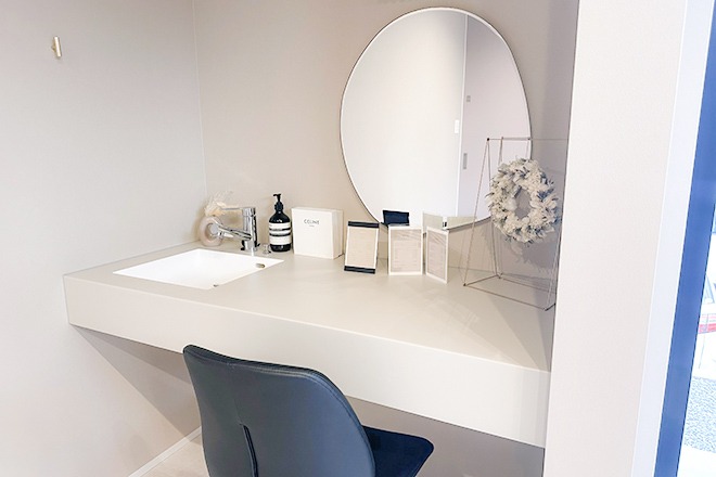 大人女性の肌悩みに寄り添う「ハーブピーリング」がおすすめ◎お肌のトーン/毛穴/肌ツヤ/シワ/たるみ/くすみなどのお悩みにピッタリ! 年齢とともに増える肌のお悩みに対応するエイジングケア施術です。 大人の肌荒れに悩んでいる方や深いシワにお悩みの方、お肌を明るくしたい方にはお悩みに合わせた追加オプションもご用意。 ひとりひとりのお肌に合わせたケアができると評判です♪ 肌荒れや肌トラブル中の方も利用OK!根本改善を目指せるため、ブライダルやイベント前にもおすすめです◎ ピーリングのネックだった剥離もダウンタイムもないの施術のため、施術後すぐに化粧OK! ご来店後に予定があっても気にせずご利用いただけます♪ 店内はベージュを基調とした落ち着く空間。マンツーマンの完全個室でゆっくりとご相談いただけます。
