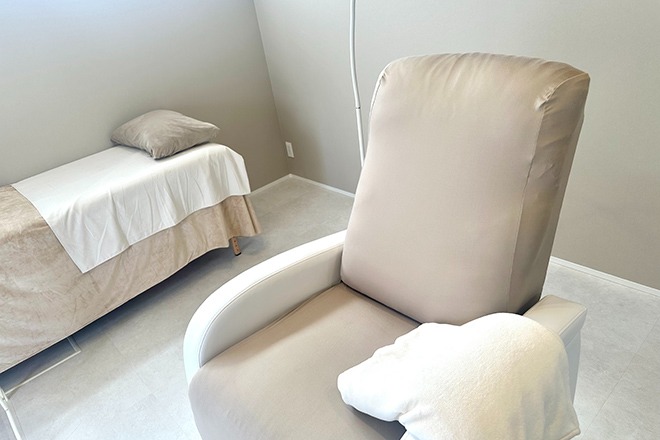 ベージュを基調とした、大人女性が落ち着く空間をご用意。完全個室で行うマンツーマン施術をごゆっくりお楽しみください♪