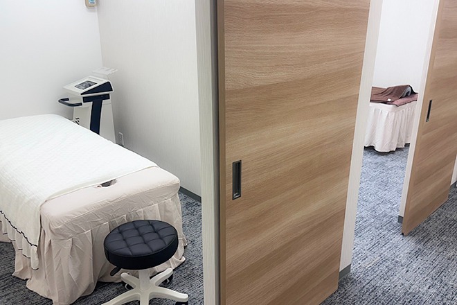 ゆったりと過ごせる広さのベッドをご用意。自分だけの時間を過ごせる個室空間で、リラックスして施術を受けられます。
