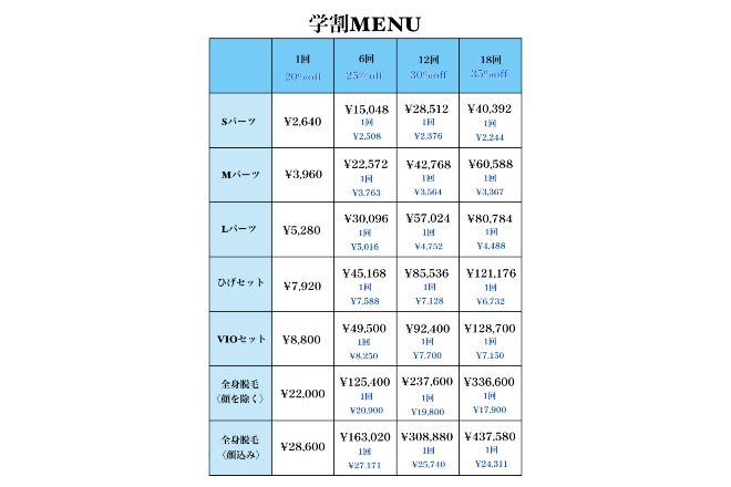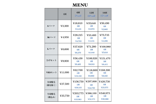 RESET Men’s Beauty Salonのメニュー