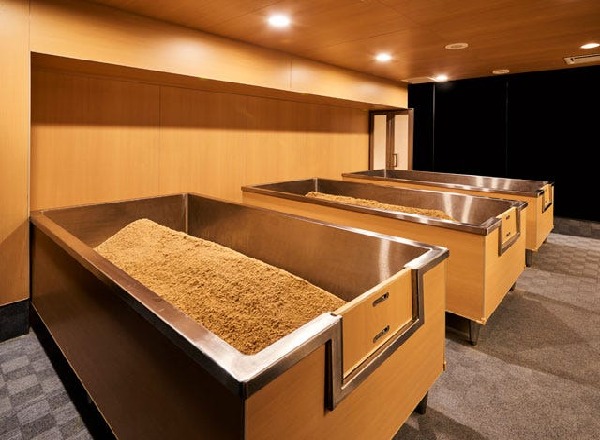 清潔感のあるヒノキの香りに包まれた店内。オガクズの品質やサスティナビリティを追求するために奈良県吉野に自社製材工場を構え、吉野の山林から品質確かな素材を用意。フカフカなオガクズの自然の発酵熱で体の芯からじっくり温めていく。大量発汗させ、体の巡りを整えると同時に、免疫力や基礎代謝にもアプローチ。むくみ解消やデトックスしたい方におすすめ。